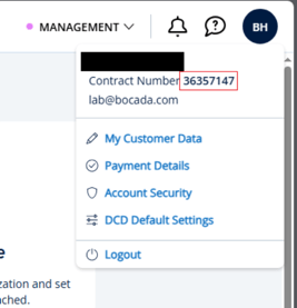 • Click your user profile icon (in the top right corner) to see the Contract Number.