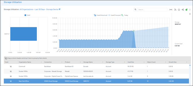 The Storage Utilization report enables you to see all of your connected storage data in one place to better understand and compare how much data is being consumed, including trends over time and a forecast for the future.