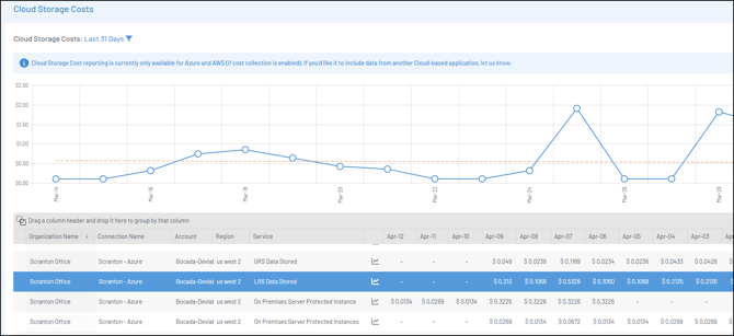 It can be challenging to understand the cost of storing backup data in Cloud storage applications which is where the Cloud Storage Costs report can be beneficial. Currently supporting AWS & Azure, this report shows you how much your backups are costing on a daily or monthly basis.
